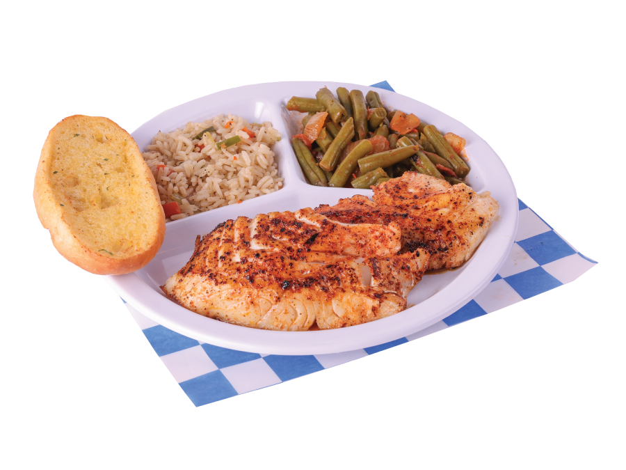 2 pc. Grilled Cod Plate with the choice of two sides, and a garlic bread.